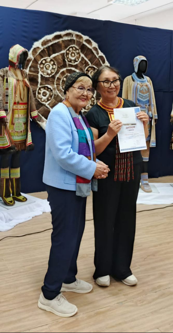 Диплом в номинации «Возрождение приемов шитья эвенкийских передников» — Стручкова Валентина Анатольевна.